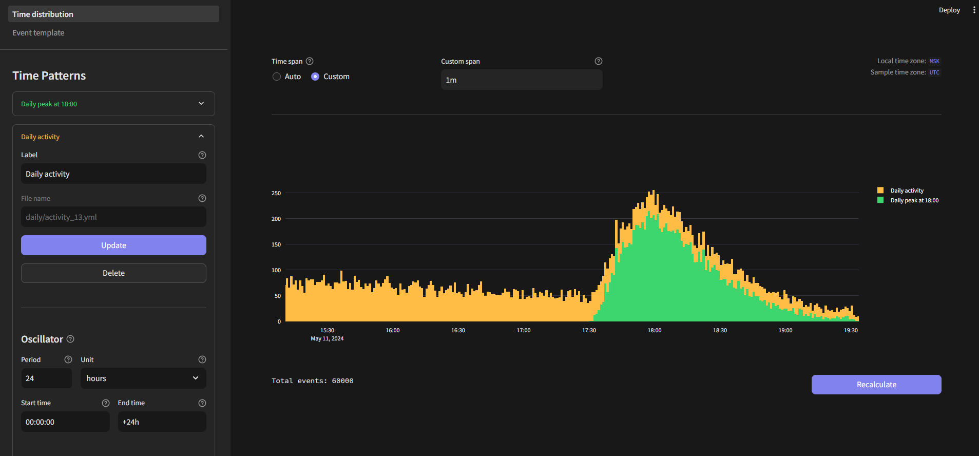 One of the powerful features is the ability to mix several time patterns to achieve complex distributions. By combining different time patterns you can create sophisticated time distribution that closely imitate real-world scenarios.