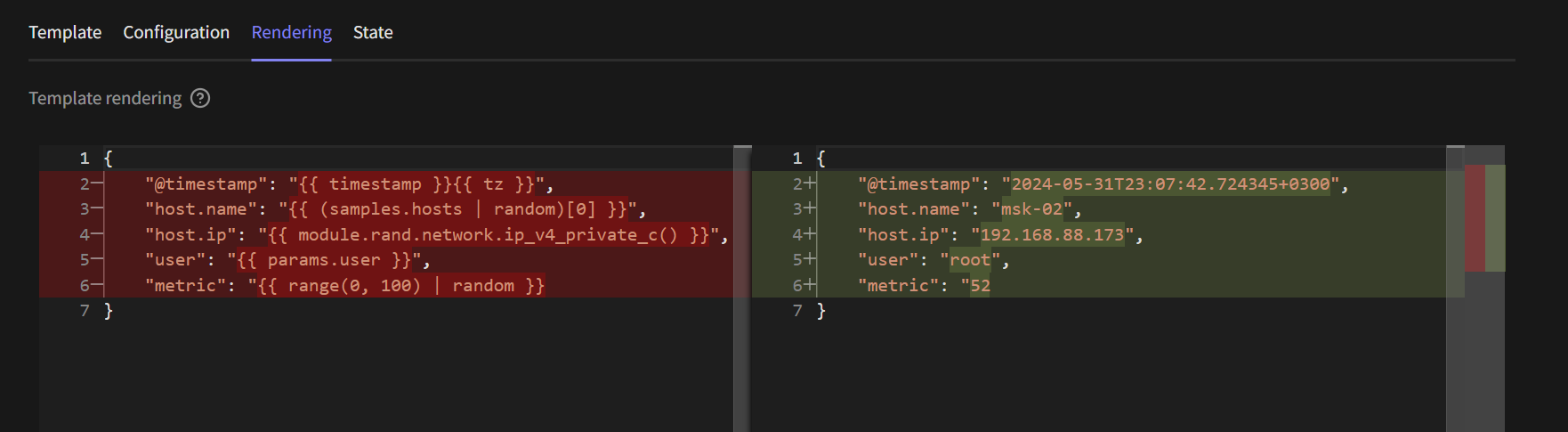 Once template is ready you can render it with pretty highlighting to test if the resulting event is constructed properly.