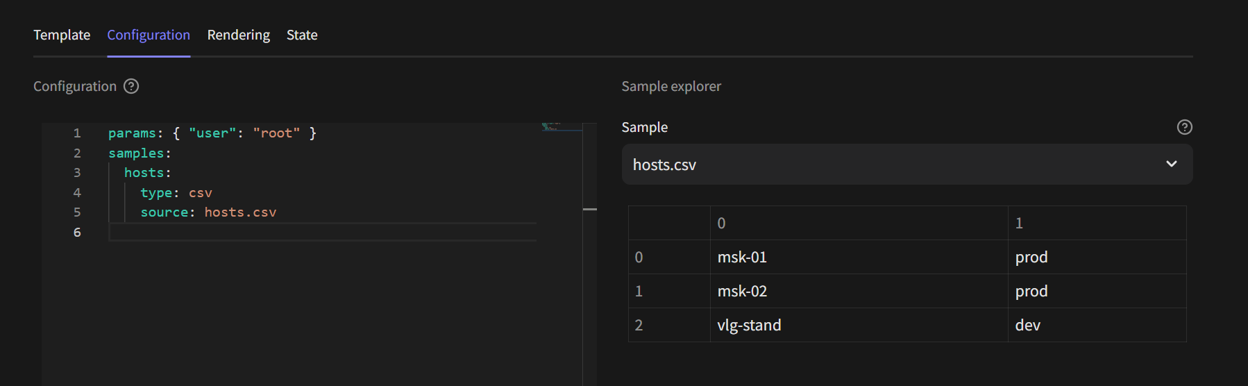 It's easy to use data samples in templates because Jinja event plugin provides Samples API.